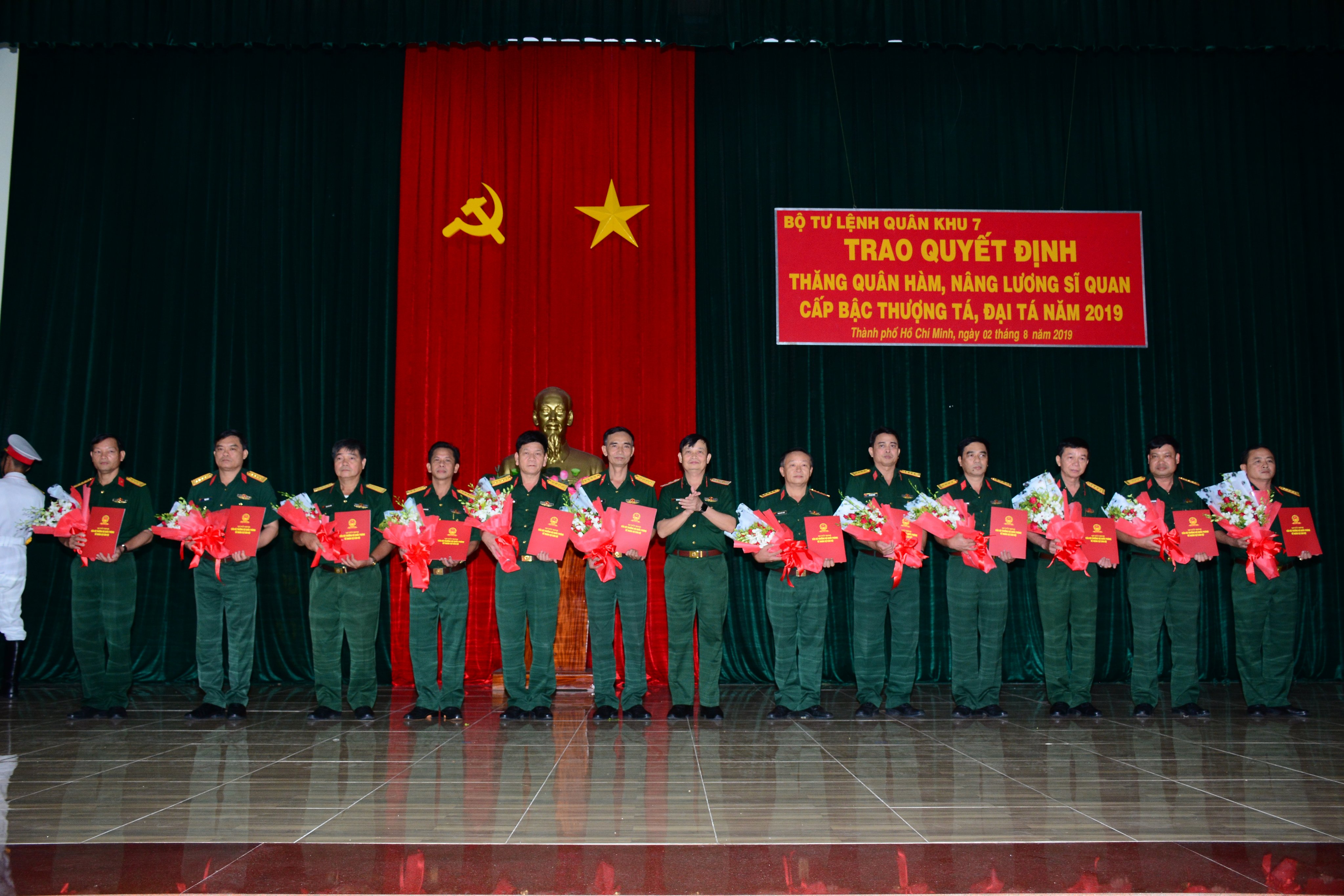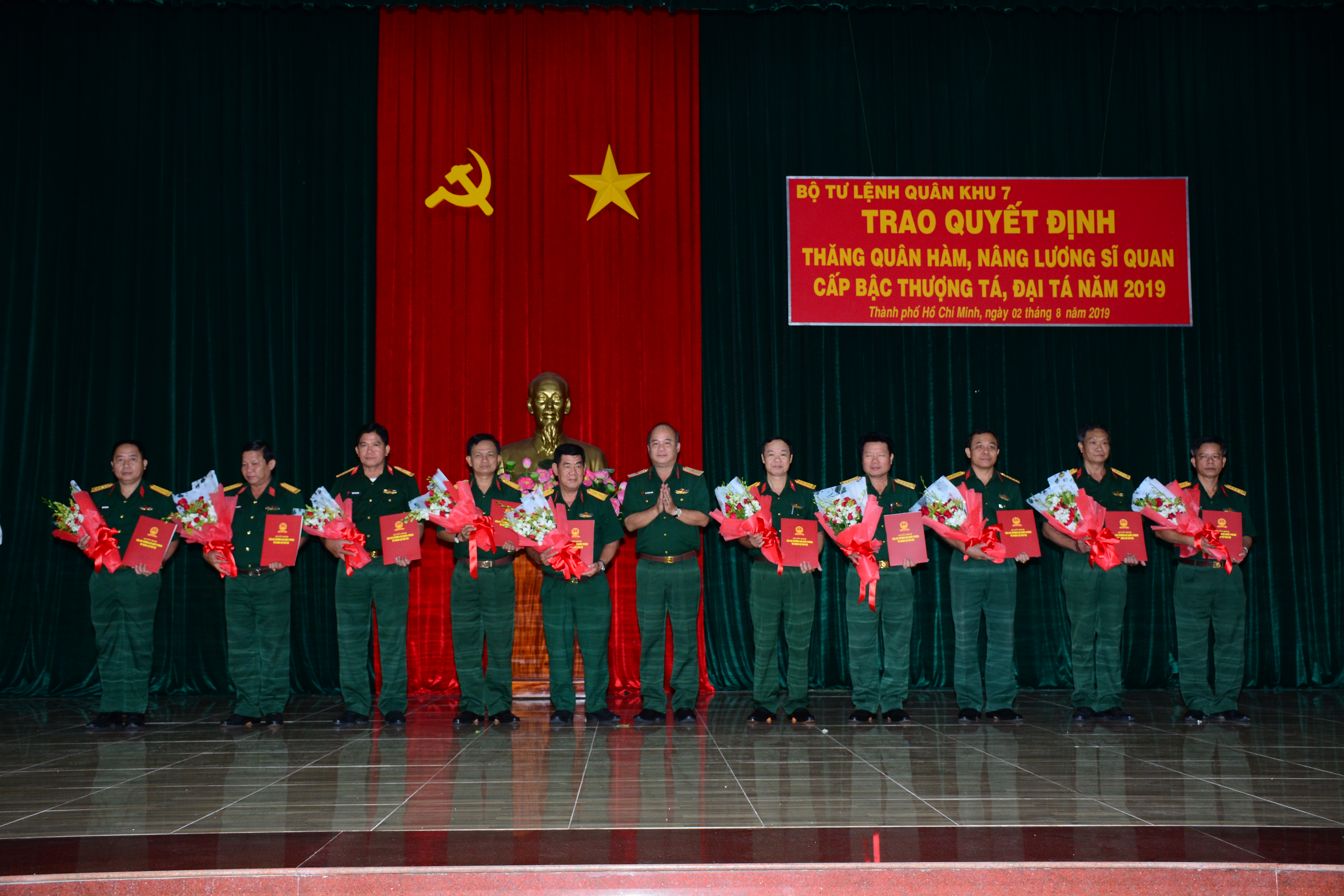 Trung tướng Trần Hoài Trung, chúc mừng các đồng chí được nhận quyết định thăng quân hàm, nâng lương đồng thời ghi nhận những đóng góp của các đồng chí trong thực hiện nhiệm vụ, góp phần xây dựng cơ quan, đơn vị hoàn thành nhiệm vụ và xây dựng Lực lượng vũ trang Quân khu 7 ngày càng vững mạnh toàn diện. Đồng chí Chính ủy cũng tin tưởng rằng những cán bộ được thăng quân hàm, nâng lương đợt này, tiếp tục học tập, rèn luyện, không ngừng nâng cao trình độ, khắc phục khó khăn, hoàn thành xuất sắc mọi nhiệm vụ được giao.