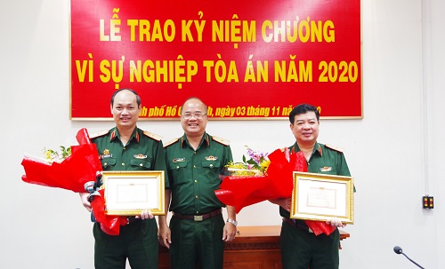 Thừa ủy quyền lãnh đạo Toà án nhân dân tối cao, Thiếu tướng Du Trường Giang trao tặng kỷ niệm chương “Vì sự nghiệp Tòa án” cho Thiếu tướng Nguyễn Văn Nam, Tư lệnh Bộ Tư lệnh TP.HCM và Thiếu tướng Phan Văn Xựng, Chính ủy Bộ Tư lệnh TP.HCM vì có những đóng góp quan trọng, ý nghĩa to lớn đối với sự nghiệp xây dựng và phát triển của Tòa án Nhân dân nói chung và Tòa án Quân sự nói riêng.