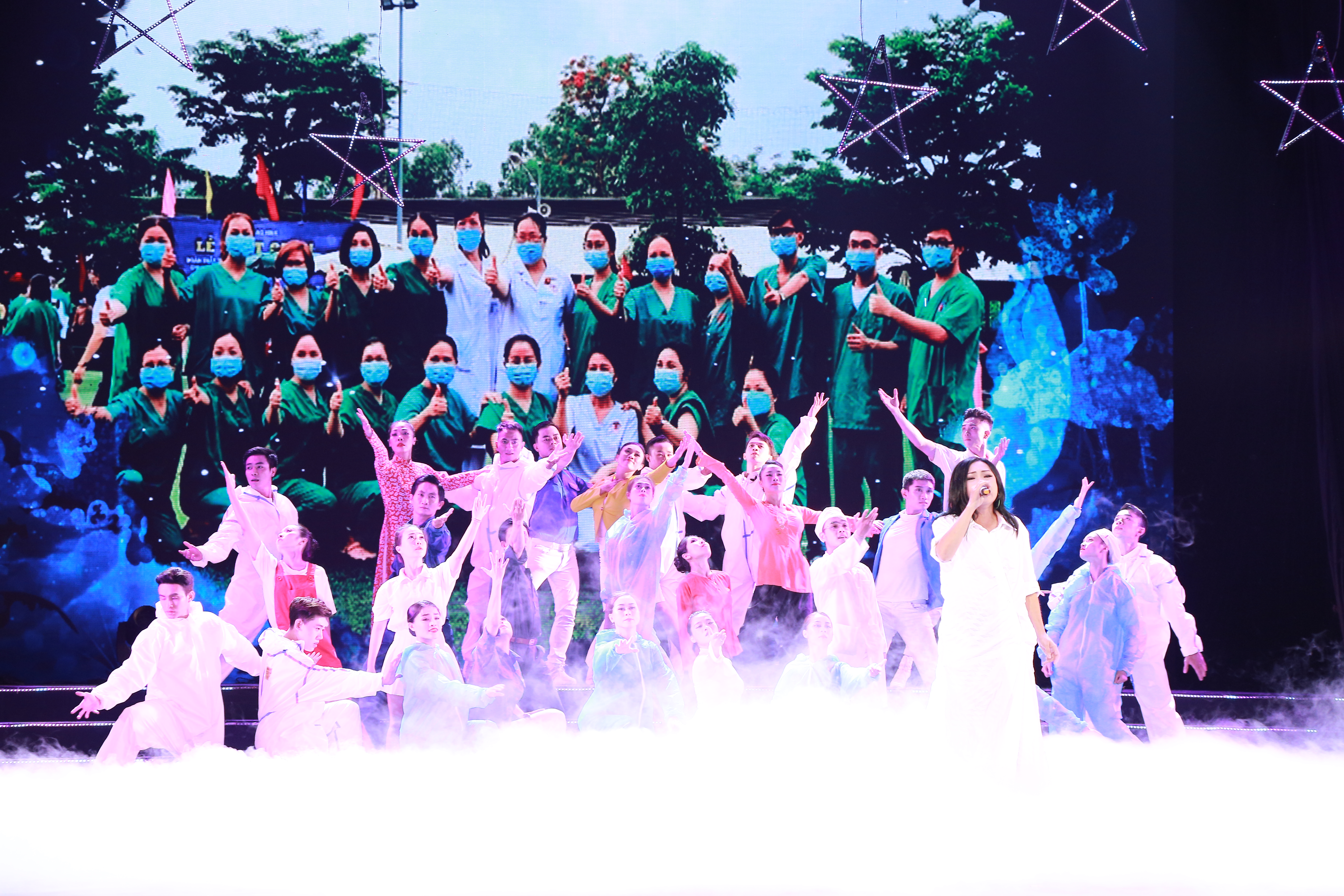 Ca múa "Ngày mai lại tươi sáng" mở màn cho lễ công bố và trao giải.