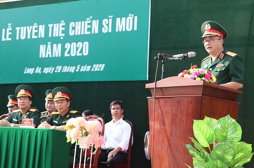 Thiếu tướng Du Trường Giang, phó Tư lệnh Quân khu phát biểu giao nhiệm vụ tại buổi lễ.