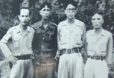 Từ trái qua: Đồng chí Huỳnh Văn Nghệ, đồng chí Lê Duẩn, Trung tướng Nguyễn Bình và đồng chí Dương Quốc Chính ở Chiến khu Đ.