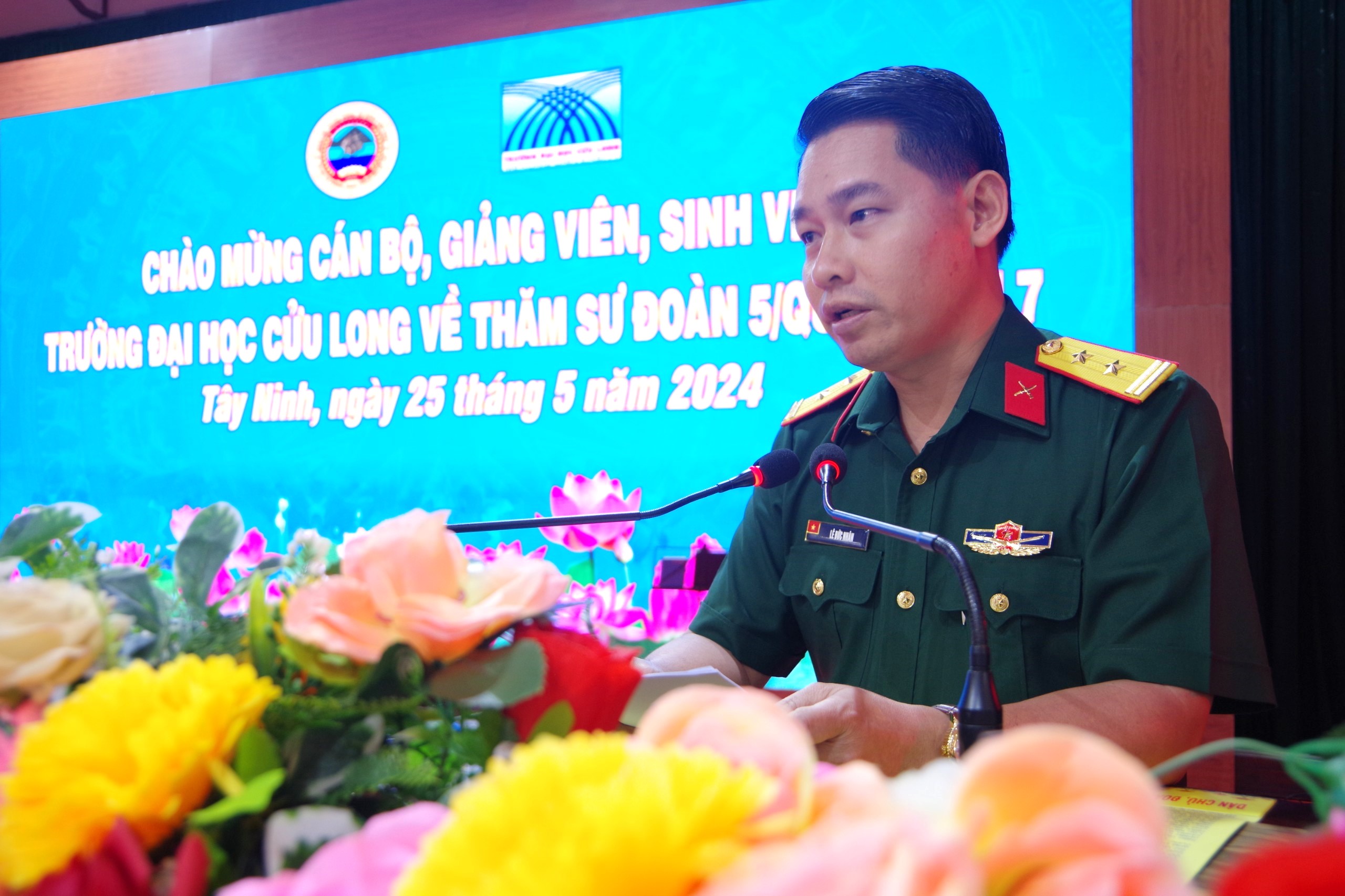 Nhân chuyến công tác Trường Đại học Cửu Long mong muốn được hợp tác với Sư đoàn 5 trong các hoạt động tuyển sinh, giáo dục, đào tạo, nghiên cứu khoa học, trao đổi học thuật,… nhằm gia tăng kiến thức, bổ túc bằng cấp cho các chiến sĩ, đặc biệt bộ đội xuất ngũ. Các ngành hợp tác khá đa dạng từ chuyên ngành kinh tế, tài chính, kế toán đến các ngành kỹ thuật như: Công nghệ thông tin, mạng máy tính và an ninh mạng, công nghệ điện lạnh; công nghệ kỹ thuật điện - điện tử; công nghệ kỹ thuật cơ khí; công nghệ chế tạo máy; công nghệ kỹ thuật ô tô.