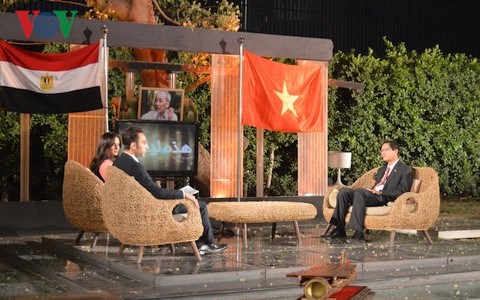 Tham gia phần phỏng vấn trực tiếp, Trợ lý Bộ trưởng Ngoại giao Ai Cập phụ trách các vấn đề văn hóa quốc tế, ông Medhat El-Meligy (Mét-hát En Mê-li-ghi) và Tham tán Thương mại Phạm Thế Cường đã đánh giá cao những kết quả đạt được trong quan hệ hợp tác song phương cũng như nêu bật các giải pháp nhằm thúc đẩy hơn nữa quan hệ hai nước trên lĩnh vực văn hóa và thương mại, đặc biệt là những ngành hai bên có thế mạnh.