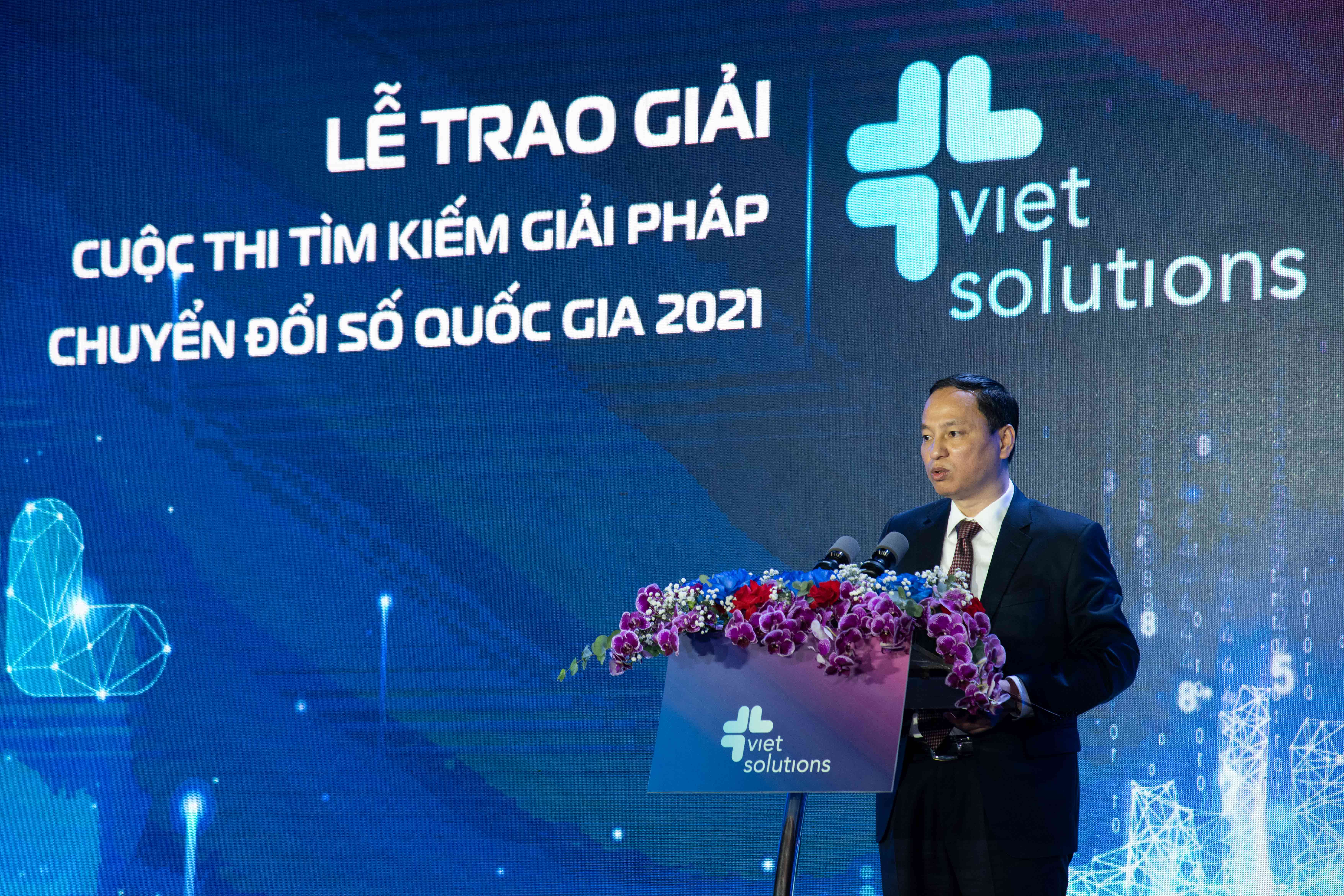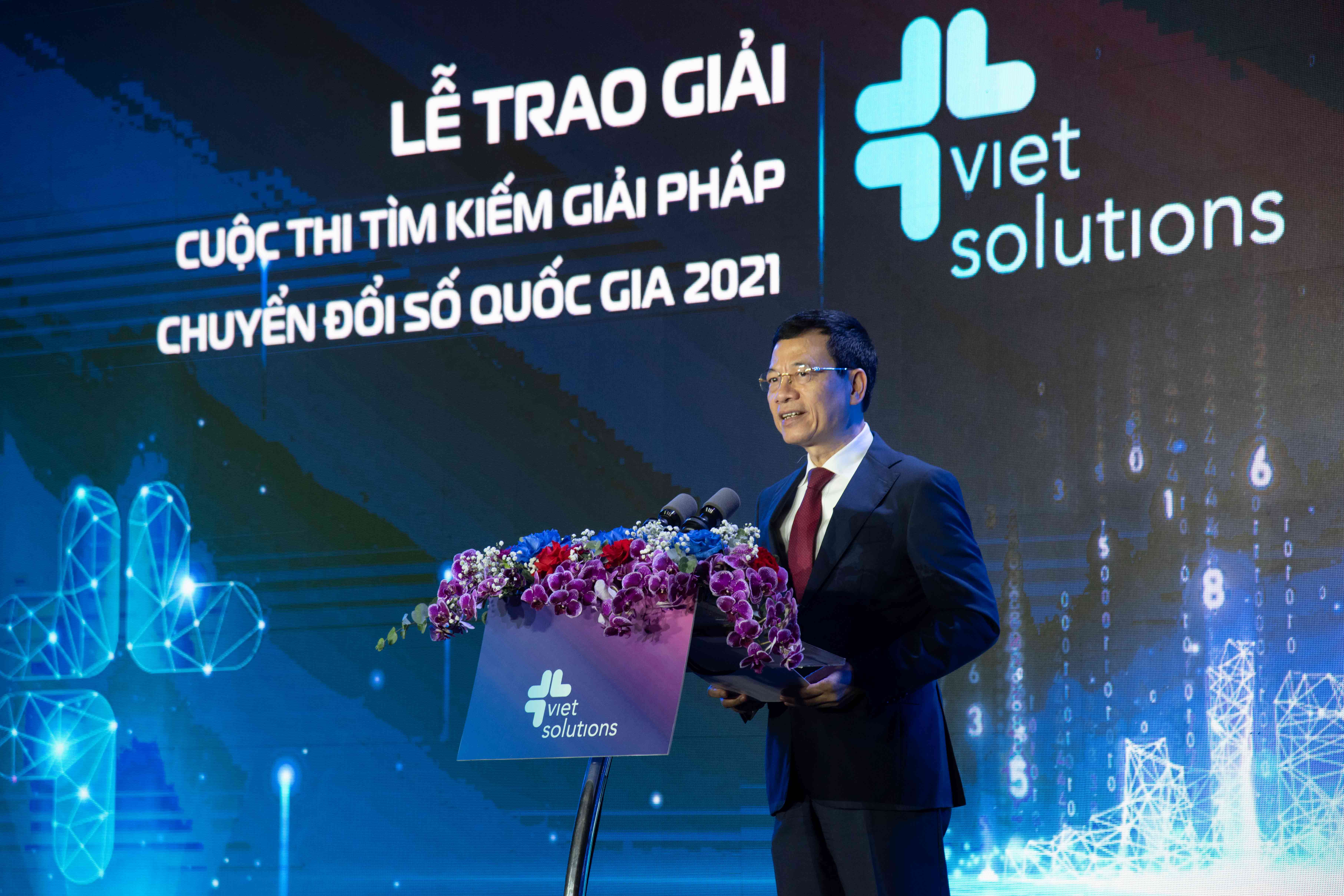 (QK7 Online) - Ngày 18/10, Bộ Thông tin & Truyền thông tổ chức Lễ trao giải Viet Solutions mùa giải 2021. Đến dự có ông Nguyễn Mạnh Hùng, Ủy viên Ban chấp hành Trung ương Đảng, Bộ trưởng Bộ Thông tin & Truyền thông, kiêm Phó trưởng ban Tuyên giáo Trung ương, Phó Chủ tịch Ủy ban Quốc gia về chuyển đổi số.