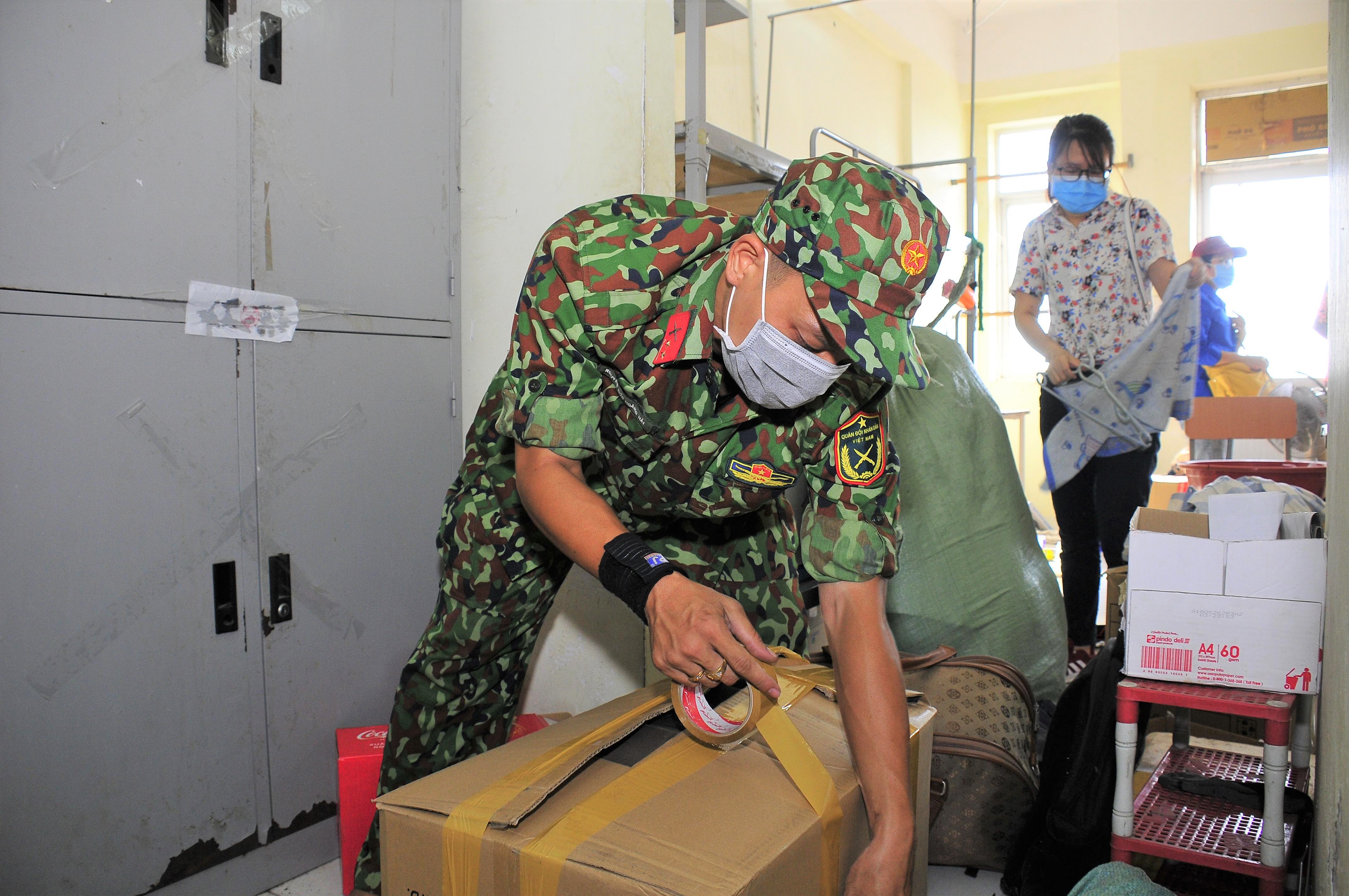 Chiến sĩ Trung đoàn Gia Định tham gia chuẩn bị địa điểm đón công dân đến cách ly phòng chống dịch Covid-19.
