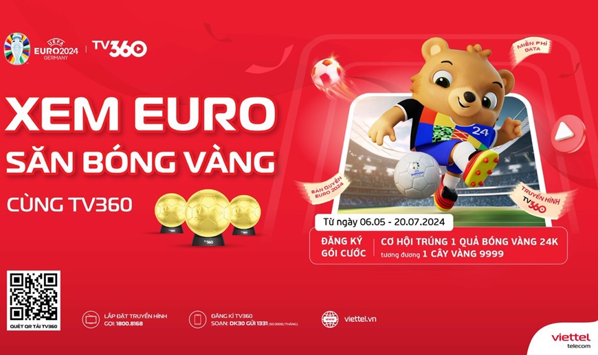 (QK7 Online) - Hòa mình cùng giải đấu bóng đá được mong chờ nhất năm nay Euro 2024, từ nay đến ngày 20-7, Viettel Telecom triển khai ưu đãi “Xem Euro - Săn bóng vàng cùng TV360”. Tham gia chương trình, khách hàng sẽ có cơ hội nhận được 1 trong 3 giải thưởng, mỗi giải gồm 1 quả bóng vàng Euro 24K trị giá 1 cây vàng 9999.