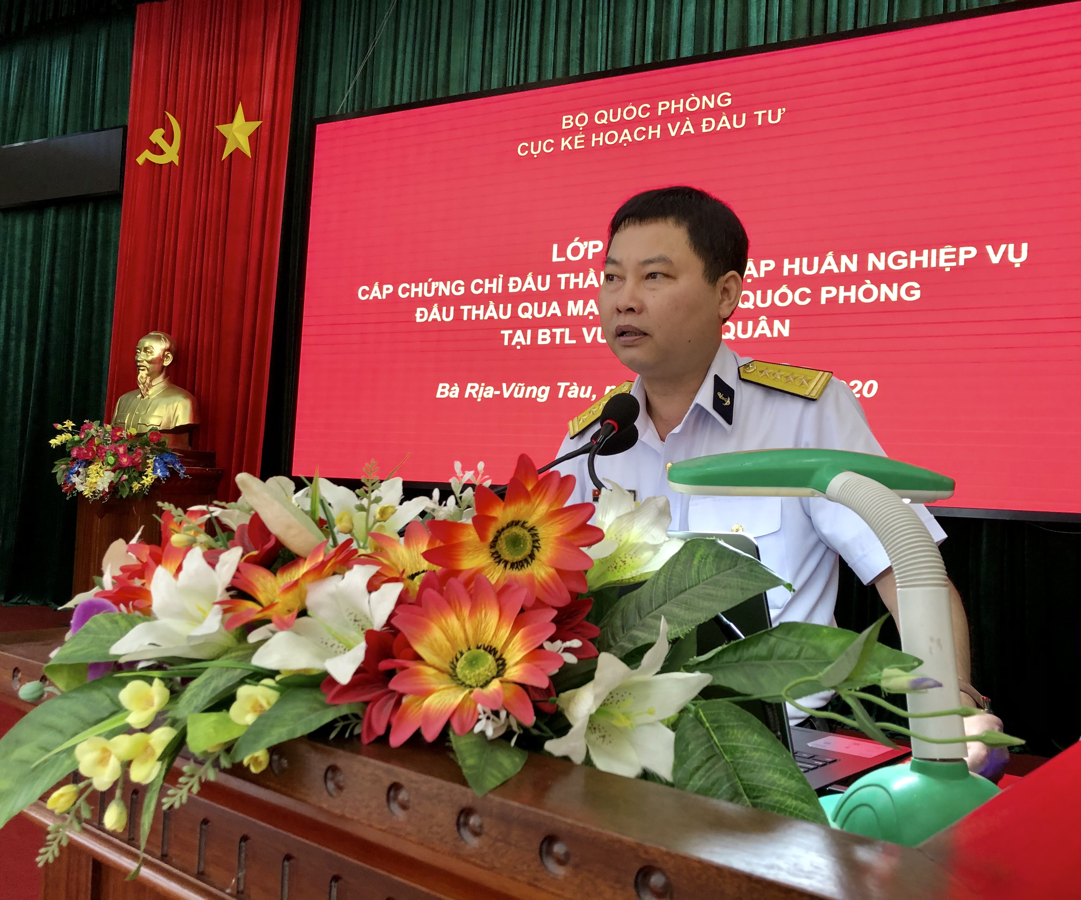 Phát biểu khai mạc lớp học, Đại tá Nguyễn Anh Tuấn, Tư lệnh Vùng 2 Hải quân đề nghị các học viên tập trung nghiên cứu, nắm chắc những nội dung tập huấn để sau khi học tập sẽ góp phần nâng cao hiệu quả trong quá trình tổ chức thực hiện làm công tác đấu thầu của các chủ đầu tư, các ban quản lý dự án tại đơn vị.