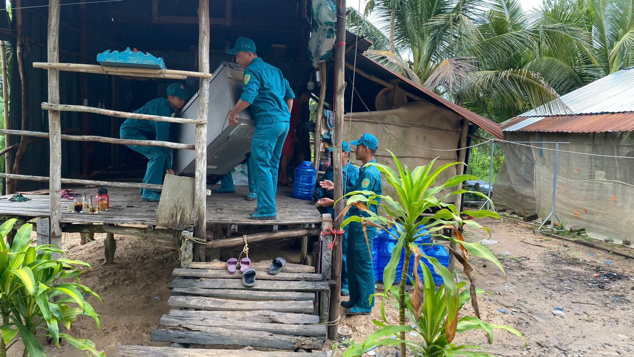 LLVT tỉnh Long An giúp dân thu dọn đồ đạc chuẩn bị tháo dỡ nhà cũ, xây nhà tại điểm dân cư liền kề chốt dân quân biên giới.