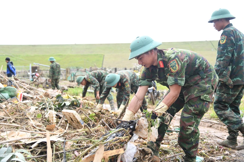 Chiến sĩ Sư đoàn 302 giúp Nhân dân tỉnh Lâm Đồng khắc phục hậu quả lũ lụt.