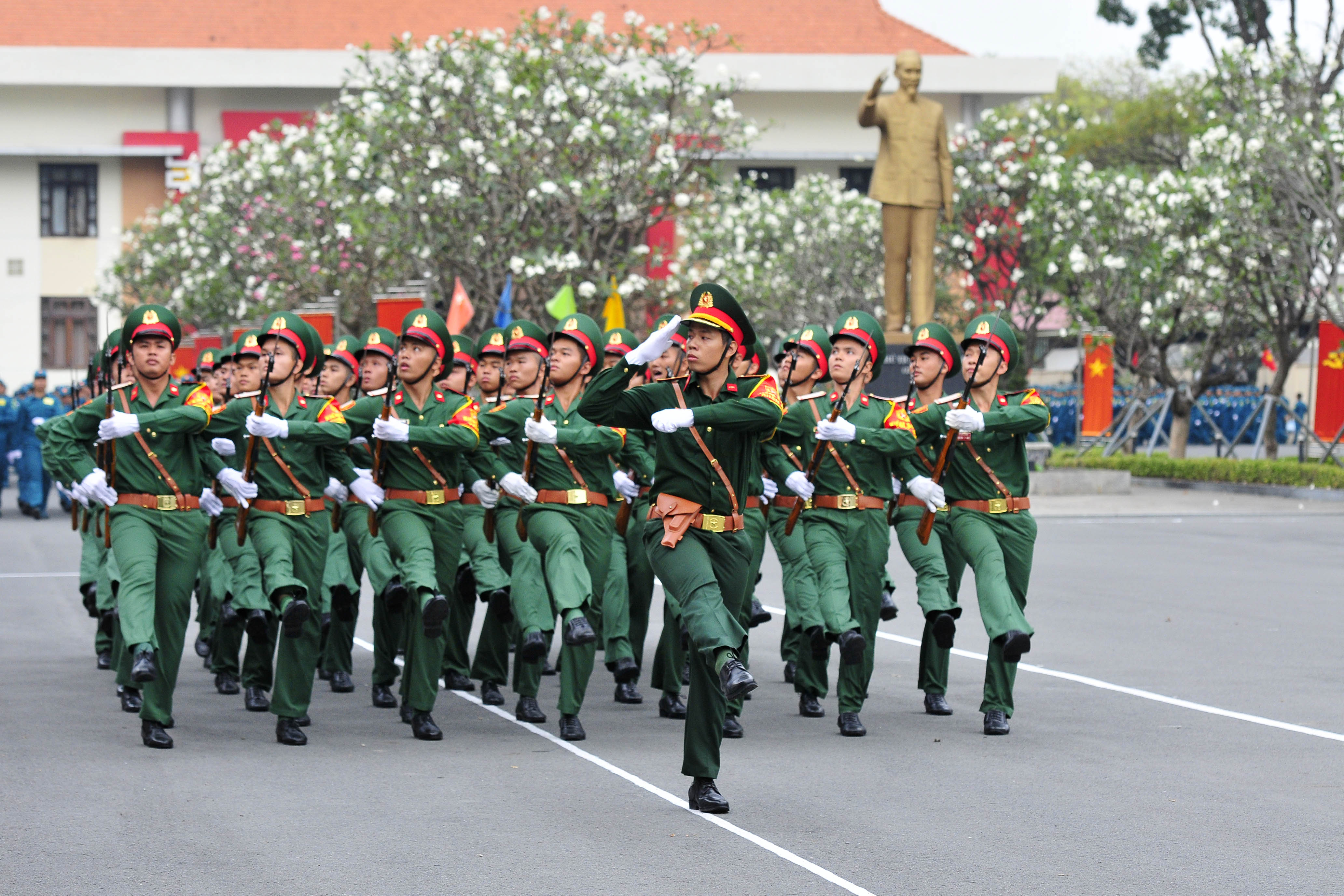 Cán bộ, chiến sĩ Tiểu đoàn duyệt đội ngũ tại Lễ ra quân huấn luyện Bộ Tư lệnh Thành phố Hồ Chí Minh.